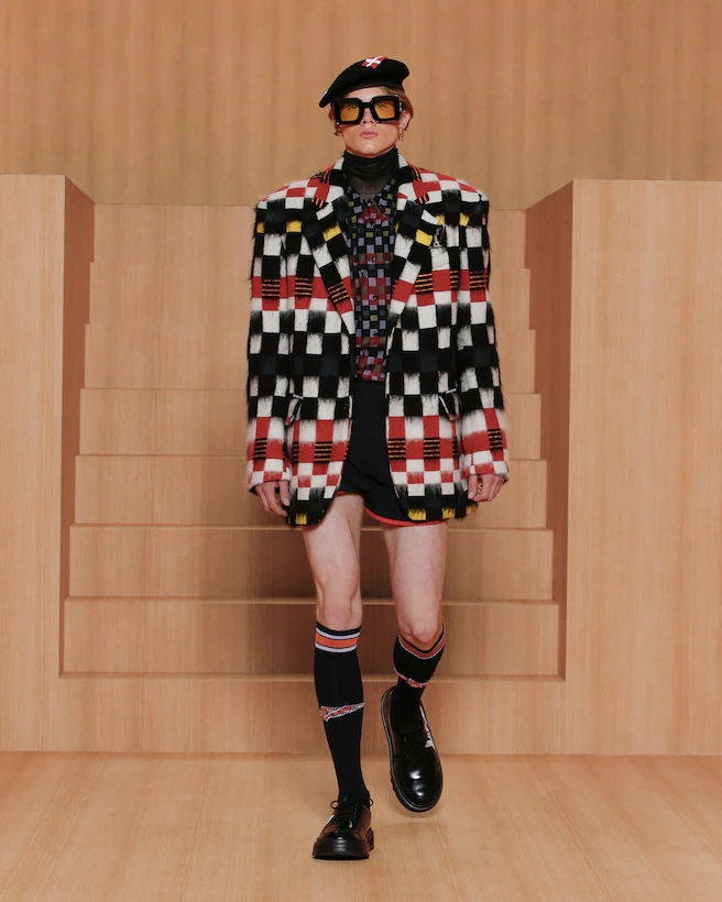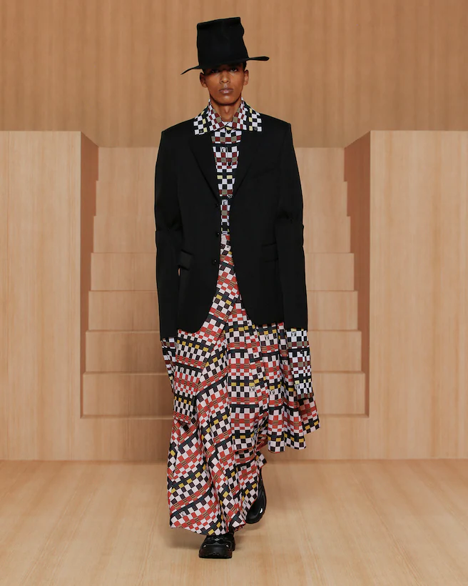 Metaphorically informed by the Amen Break, a little-known 1969 drum solo that became a founding factor in hip-hop and jungle music and has been sampled thousands of times since, the Men’s Spring-Summer 2022 Collection explores the myth of ownership in contemporary creativity. The Amen Break exemplifies the arts’ instinct to sample and resample, which when applied to fashion, sees the staples of suits, tracksuits, shirts and t-shirts re-interpreted on a never-ending loop.